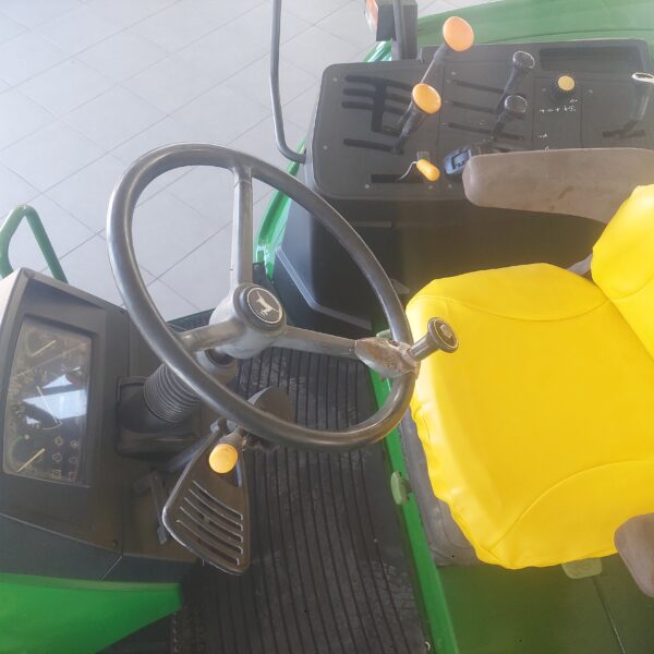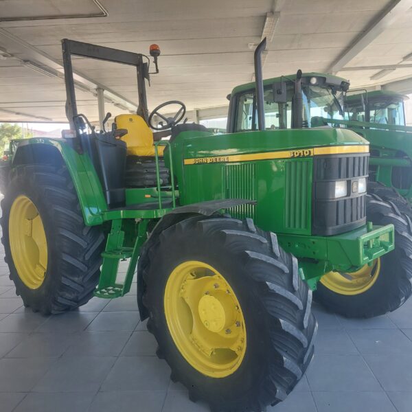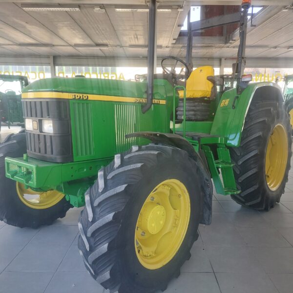 TRACTOR AGRICOLA USADO MARCA JOHN DEERE MODELO 6010 PREMIUM, CON ESTRUCTURA DE PROTECCION DE DOS POSTES TRASEROS, PLATAFORMA ABIERTA, INVERSOR ELECTROHIDRAULICO BAJO EL VOLANTE, TRANSMSION POWER QUAD 24/24 DE 40KMH, MOTOR DE 80 CV SIN TURBO, BOMBA HIDRAULICA DE 110L, 2 VALVULAS DE MANDO A DISTANCIA, ELEVADOR REFORZADO, NEUMATICOS TRASEROS 420/85-34 Y DELANTEROS 340/85-24 EN TAURUS AL 50% DE USO. MUY POCAS HORAS REVISADO Y GARANTIZADO